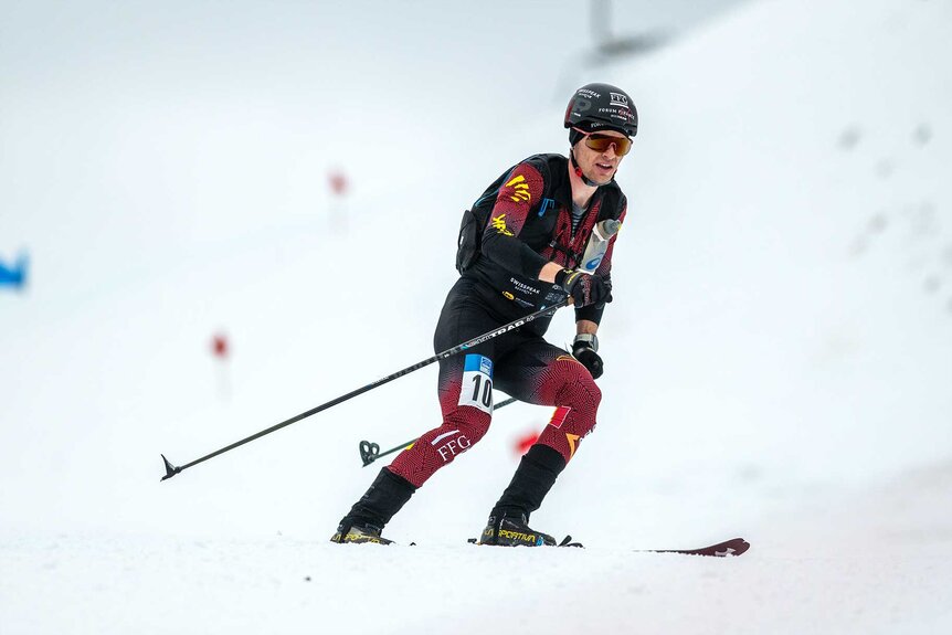 What exactly is ski mountaineering? It’s a timed event in which competitors climb a mountain course and then descend on skis. Fans often call the sport by the nickname, “skimo.”