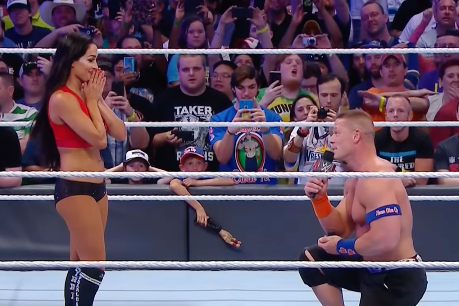 Now if you’ll excuse us, we’re going to go back to crying over the fact that the couple broke off their engagement a short time later. Although they are currently very happy in their current respective relationships, we always loved John and Nikki together, and we’ll always have this WrestleMania proposal to look back on with adoration.