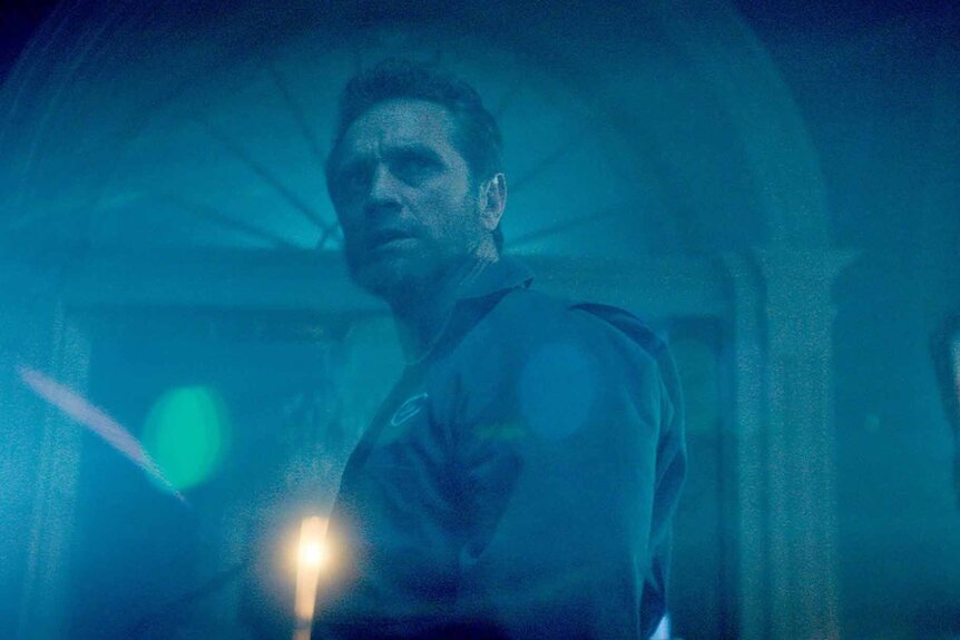 As Jake runs in terror from his raging father, the two end up in a ballroom of ghostly dancers, waltzing around oblivious to their confrontation. After downing a bottle of liquor (offered by Brad Dourif's Charles Lee Ray posing as a butler), Lucas began to get physically aggressive and jabbed Jake in the chest with the bat. Just when viewers think the worst will happen, Jake takes the high road and spits out, “I forgive you!” which stops Lucas in his tracks.