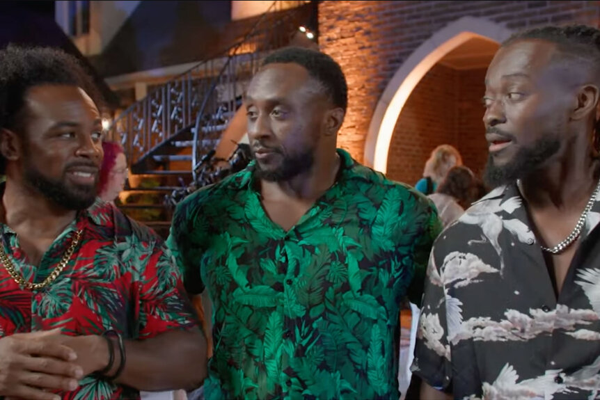 After Rhodes tells her that he doesn’t think she should be on the show, the woman starts staring at him — and Rhodes doubles over in pain. The New Day looks concerned but all three try to remain calm and keep filming.