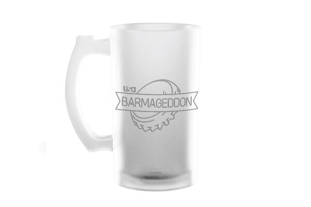 12. Barmageddon Logo 16 oz Frosted Beer Stein, $23.95
