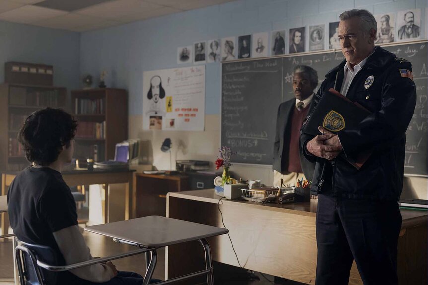 Set against the Satanic Panic of the late 1980s, the show takes place in the small Michigan town of Happy Hollow, where strange and eerie events begin to take place following the disappearance of a star high school quarterback. Caught in the middle of the town's rising insanity is Chief Dandridge (Campbell), a level-headed cop who, like the actor who plays him, doesn't buy into the fire and brimstone-fueled furor. "We didn’t hire Bruce to be Ash Williams," explains creator, showrunner, and executive producer Matthew Scott Kane. "Everyone that came onto the show, we used against type."