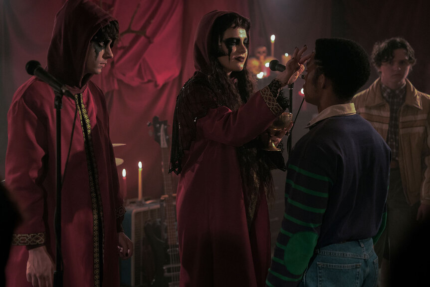 “The idea of the band that we have in the show is that none of them are just the generic metal head kid. They’re all kinda in that world but, I was in a band in high school and none of us liked the same things, we just liked making the same things,” he explained. “So, the idea was to take a bunch of different people in this world and combine all of them into a soundtrack that felt cohesive and told the story of this whole town and not just the story of these three kids. So we got everything from Belinda Carlisle to 'Valerie.'”