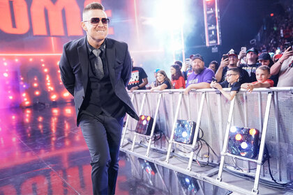 The Miz is excited to see his wife beat up their Royal Rumble opponents, but he can’t help but admit he’s a little worried to see his wife and the mother of his kids try a move that’s not only complex but something she’s never done before from the top rope.