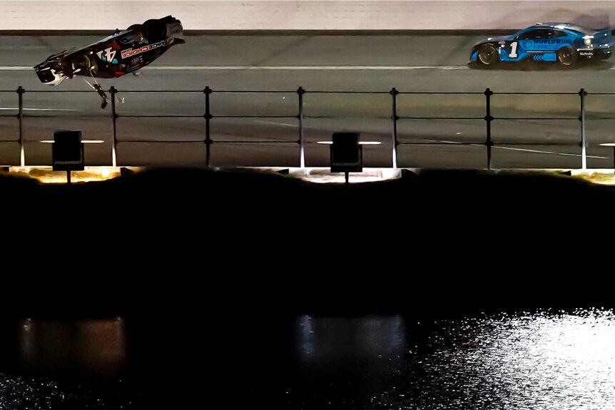 Driving the No. 41 Ford Mustang for Stewart-Haas Racing, Preece caught a bump from behind by Erik Jones, causing Preece to lose traction and slide sideways as he came out of Turn 2 on Lap 156. The momentum caused Preece to slam into his Stewart-Haas Racing teammate, Chase Briscoe. That subsequent contact forced Preece into the grass where the air underneath rocketed the No. 41 Ford into a scary, airborne barrel roll, savagely flipping the car 10 times before finally coming to a stop.