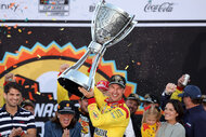 He’s on track. In 2021, he won at Talladega Superspeedway, marking his sixth career win there overall. NASCAR notes that the tally brings him in line with Jeff Gordon and Dale Earnhardt Jr. for the second most wins at Talladega of all time. He also won the Xfinity Series in 2010.