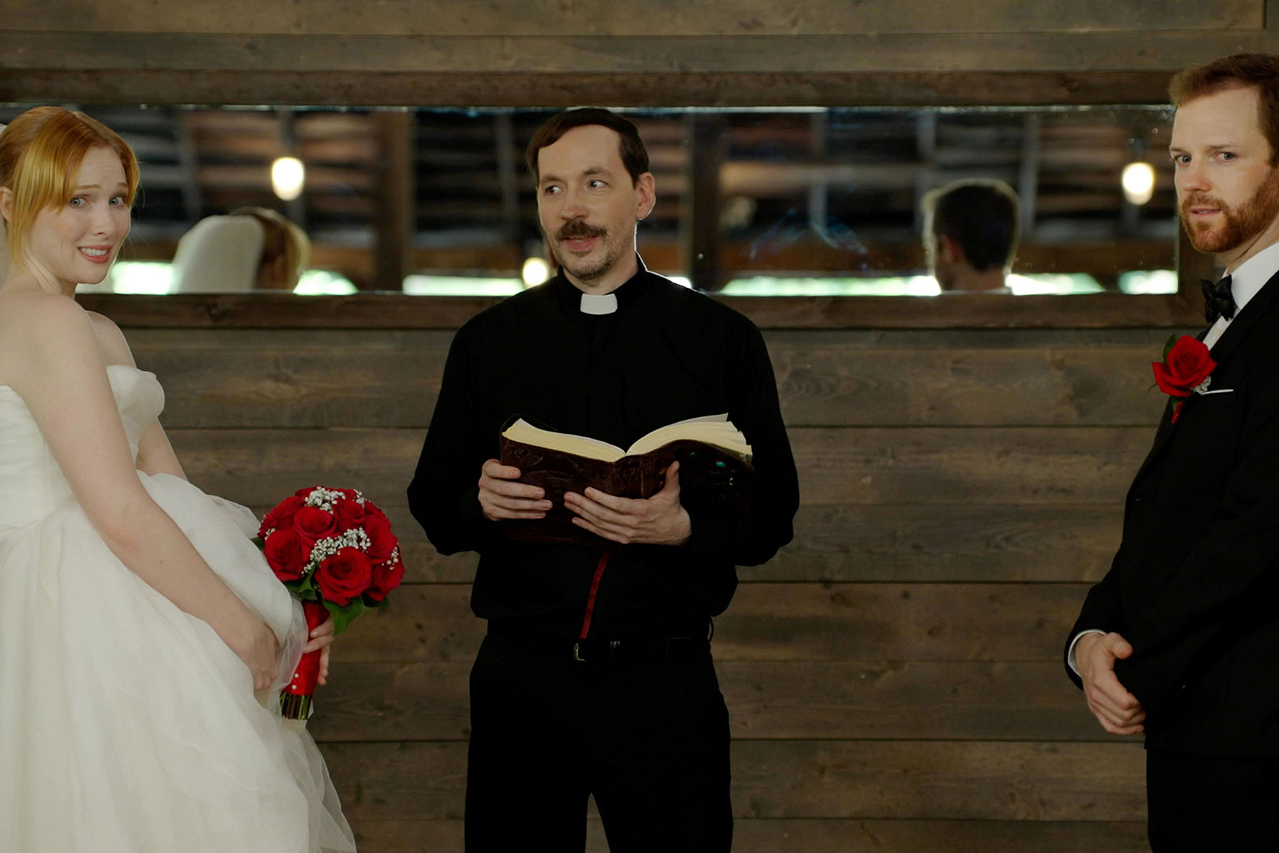 Despite the off-putting first impression, Chad and Tar enter the pavilion and meet the couple. All is well — until the almost newlyweds begin repeating after the officiant, chanting creepy words that quickly make Chad uneasy.
