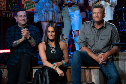While Keg Kurling is old hat to Shelton, Stefani, and Daly, who have played at Ole Red in Nashville for “Barmageddon,” the others were excited to give it a shot. The game sees contestants pair off into teams of two and use a push broom to roll kegs of beer into a target zone. It’s essentially a bar-themed version of shuffleboard.