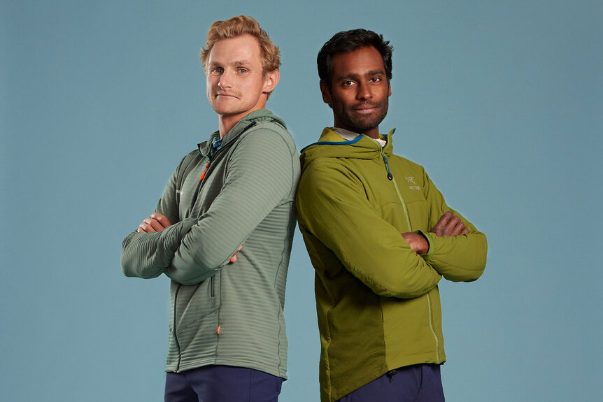 Oliver and Corry, our white river guides from Jackson, Wyoming, are right at home among the water and steep cliff faces. But Ryan and Bronson, the son and father-in-law duo from Utah, are hot on their trail. Bronson notes that he and his father-in-law are in good shape, so the climbing portion of the challenge shouldn't be too much of an issue. But smokejumpers Ethan Greenberg from Boston, Massachusetts, and Tyrie Mann Merrill from Reno, Nevada, aren't too far behind in third place.