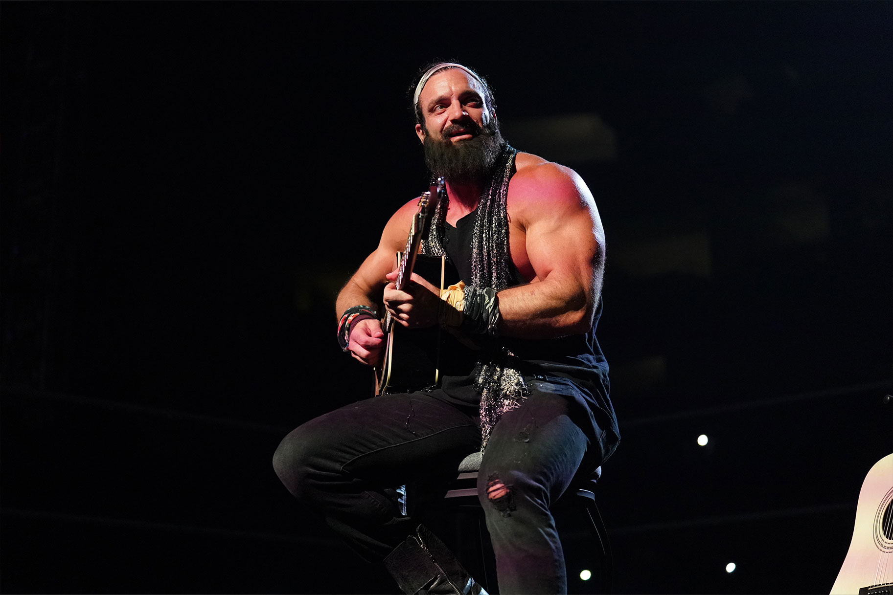 He then grabbed Elias’ guitar out of his hands and threw it out of the ring but Elias wasn't having it, bringing his knee to Owens’ jaw. Then, he bashed Owens with a guitar.