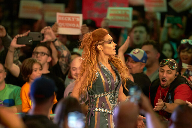 After it was announced that reigning SmackDown Women's champion Bianca Belair would defend against Carmella in an impromptu title defense, the sold-out crowd in Las Vegas wasn't exactly impressed. Carmella walked down the aisle to challenge Bianca to a tepid reaction – and that's precisely when The Man made her long-awaited return. Allegiant Stadium nearly burst at the seams as Becky's familiar music rocked the WWE Universe, as even WWE head announcer Michael Cole claimed that Becky had "stolen the thunder of this SmackDown Women's Championship match!"